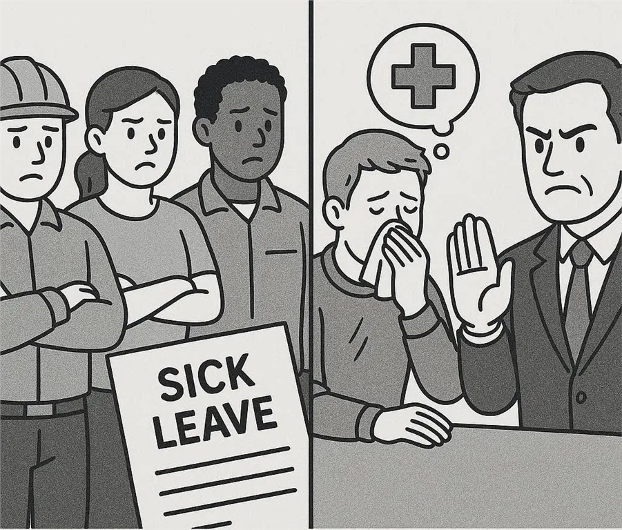 雇主不得拒絕員工請病假:員工若有依規定通知雇主病假之事由,包含口頭,書面或是請同事或家人代為請假,雇主皆不得拒絕,雇主依法可要求員工提出有關證明,但並非員工不提出證明雇主就可以拒絕員工請病假。